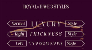 خط رويال تايبوجرافي للعناوين والشعارات عربي إنجليزي فارسي .. خط متعدد اللغات ويعتبر من خطوط اللوجوتايب أو ما يسمى بخطوط الشعارات، تجمع بين الجاذبية والوضوح، وتعتمد على التوازن بين الخطوط التقليدية (مثل الكوفي، الديواني).